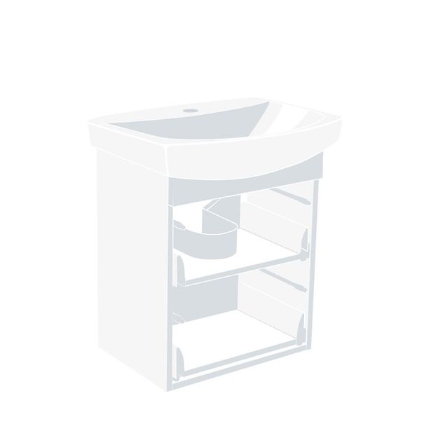 Allaskalusteen runko ja pesuallas Hafa Life 600 sisältää posliinisen pesualtaan ja mattavalkoisen allaskaapin kahdella pehmeästi sulkeutuvalla, täysin aukeavalla laatikolla. Laatikoiden sivut ovat hopealakattua peltiä ja sisäpuolen väri harmaa. Ylemmässä laatikossa on U-profiili ja alemmassa iso lokero.