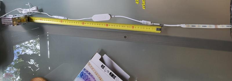 5-metrisen nauhan voi lyhentää halutun mittaiseksi, ja pakkauksen mukana toimitetaan kiinnittimet, joilla nauhan saa kiinnitettyä hyvin.