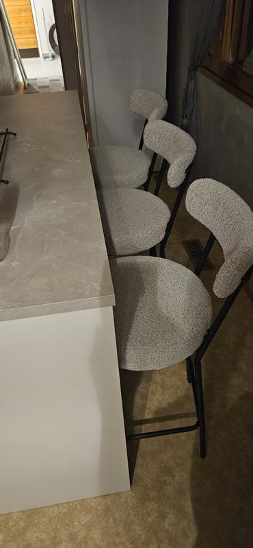 Badalona-baarituoli tuo tyylikästä ja modernia ilmettä keittiöön tai baaritason ääreen. Valkoinen bouclé-verhoilu lisää pehmeyttä ja ylellisyyttä, kun taas mustat jalat luovat kauniin kontrastin. Minimalistinen muotoilu sopii täydellisesti moneen sisustukseen ja tekee tästä tuolista sekä mukavan että näyttävän valinnan.