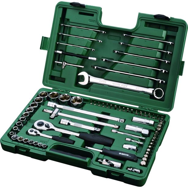 Satan laadukas 76-osainen 1/4" & 1/2" hylsy- ja kiintolenkkiavainsarja salkussa. Tukevat 60-H räikät suunnanvaihdolla. Sarjassa 1/4" hylsyt ja runsaasti kärkihylsyjä, 1/2" lyhyet hylsyt ja kiintolenkkiavaimet 8-22mm. Lisäksi tukevat 5/16" koon irtobitsit ja yleisimmät lisäosat, jatkot ja adapterit.