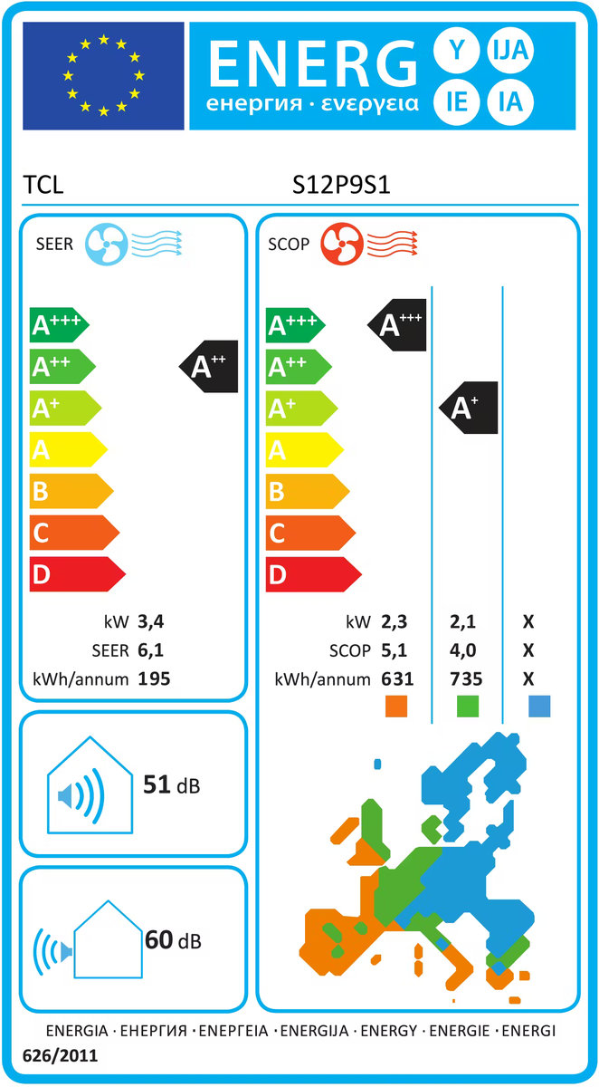 - Energiamerkinnän tarkenne: Lämmitys A++, jäähdytys A+++