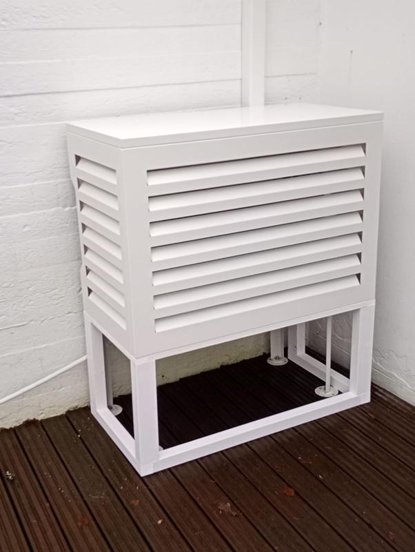 Tyylikäs ja kestävä alumiinirakenteinen suojakotelo ilmalämpöpumpun ulkoyksikölle, mitat 100 x 50 x 70 cm. Selkeälinjainen ja moderni muotoilu maisemoi ulkoyksikön tyylikkäästi kohteessa kuin kohteessa. Vankka ja kestävä alumiinirakenne on helppohoitoinen ja pitkäikäinen. Takaa pitkäikäisen suojan ilmalämpöpumppusi ulkoyksikölle.