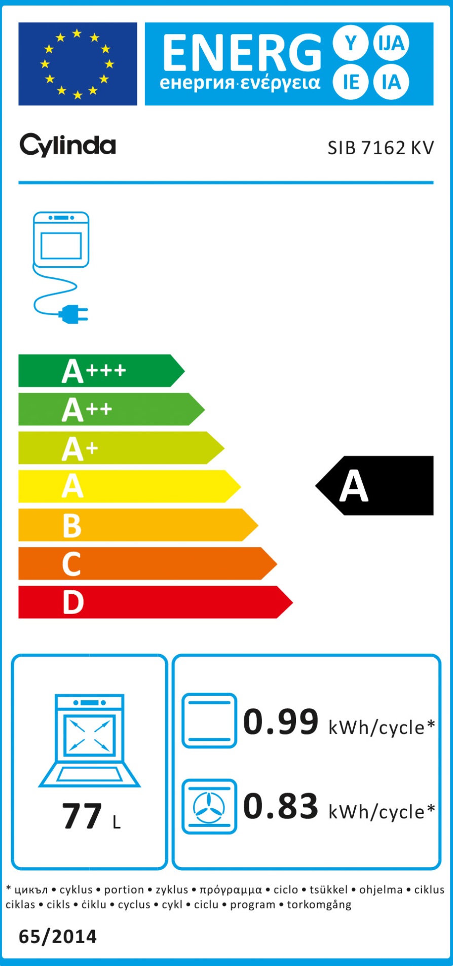 Induktioliesi Cylinda SIB7162KV, 59.5cm, 77l
