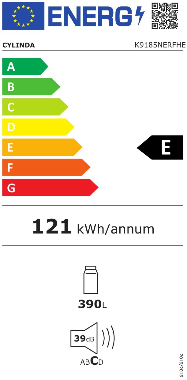Jääkaappi Cylinda K9185XRFHE, 59.5cm, inox, 390l