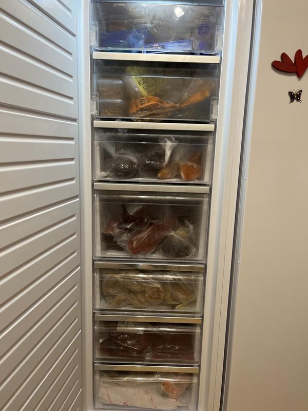 Vahvat hyllyt, jotka on valmistettu turvalasista ja jotka tunnetaan kestävyydestään. Ja jos jotain läikkyy, sen voi helposti pyyhkiä pois kostealla liinalla.NoFrost-tekniikan ansiosta pakastimesi ei pääse muodostumaan jäätä