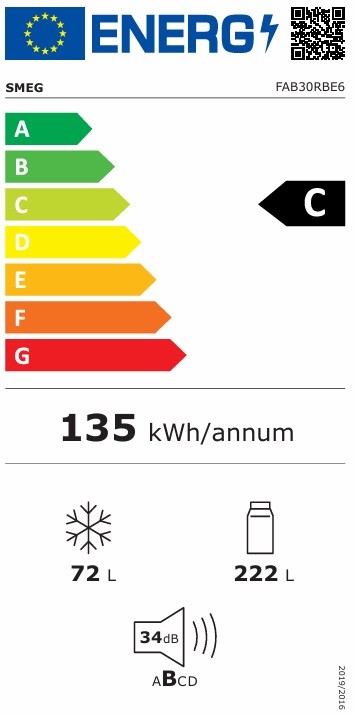 Jääkaappipakastin Smeg FAB30RBE6 70,4cm, 222/72 l, oikea