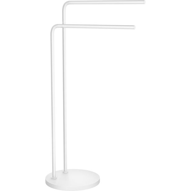 Vapaasti seisova valkoinen kaksoispyyhetanko Beslagsboden BB1231 on valmistettu teräksestä. Tangon korkeus on 800 mm, tankojen pituus 400 mm ja lattialevyn halkaisija 250 mm.