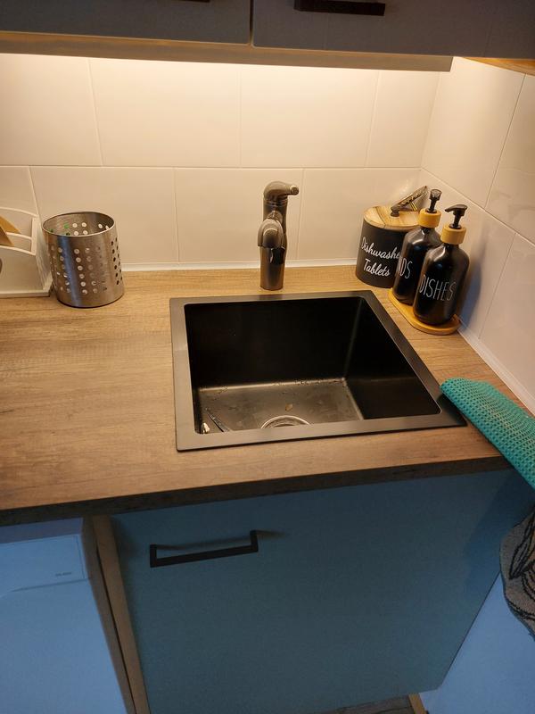 Nauti tiskialtaan puhtaan nykyaikaisesta muotoilusta. Neliön muotoinen allas sileän satiinisella viimeistelyllä huokuu klassista ja hienostunutta viehätysvoimaa, mikä sopii minkä tahansa keittiön sisustukseen!