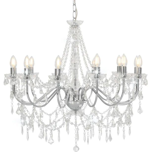 Kattokruunu helmillä hopea 12 x e14 polttimot