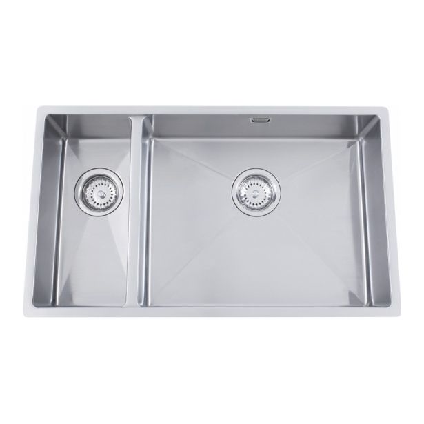 Mikäli haluat keittiöösi tilavan, kaksialtaisen allasratkaisun vähintään 800 mm leveälle kaapille, voi Nordic Tech Radius 75 KHX olla ratkaisu. Suurempi, 500 mm leveä allas on kokonaisuudessa oikealla ja pienempi allas vasemmalla. Pienempikin allas on leveydeltään kuitenkin peräti 230 mm leveä, joten altaassa on rutkasti tilaa työskennellä. Tukeva allas on valmistettu 1,2 mm paksusta ruostumattomasta teräksestä, joten se sopii monenlaisiin keittiöihin sekä tyylinsä että helpon puhdistettavuutensa puolesta. Altaan mukana toimitetaan lisäksi koripohjaventtiili ja vesilukko.