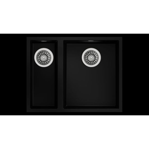Moderni musta Teka SQUARE 560 TG-komposiittiallas. Allas on valmistettu kestävästä Tegranit-kivikomposiitista, jonka pinta on helppohoitoinen ja hygieeninen. Komposiittiallas kestää hyvin kuumuutta ja on lähes naarmuuntumaton.