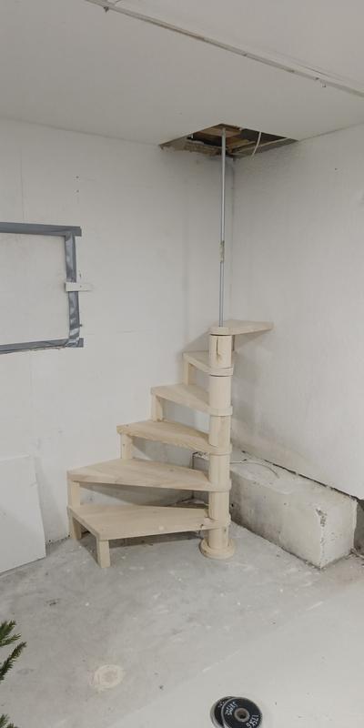 Portaat on valmistettu käsittelemättömästä kuusesta. Keskipylvään sisus on metallia ja päällinen käsittelemätöntä kuusta. Asennus on helppoa ja nopeaa, ja portaat voidaan asentaa kääntymään joko oikealle tai vasemmalle. Huomaathan, että portaat on kiinnitettävä kantavaan seinään. Portaiden toimitukseen sisältyy portaiden lisäksi keskipylväs ja ylätasanne. Kaiteet ovat erikseen myytäviä lisävarusteita.
