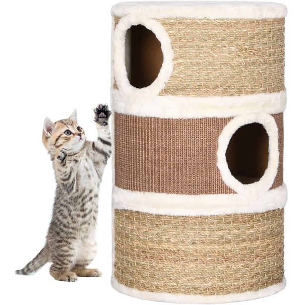 Tämä viehättävä kissan raapimistynnyri tarjoaa kisallesi monia tapoja leikkiä ja teroittaa kynsiään.