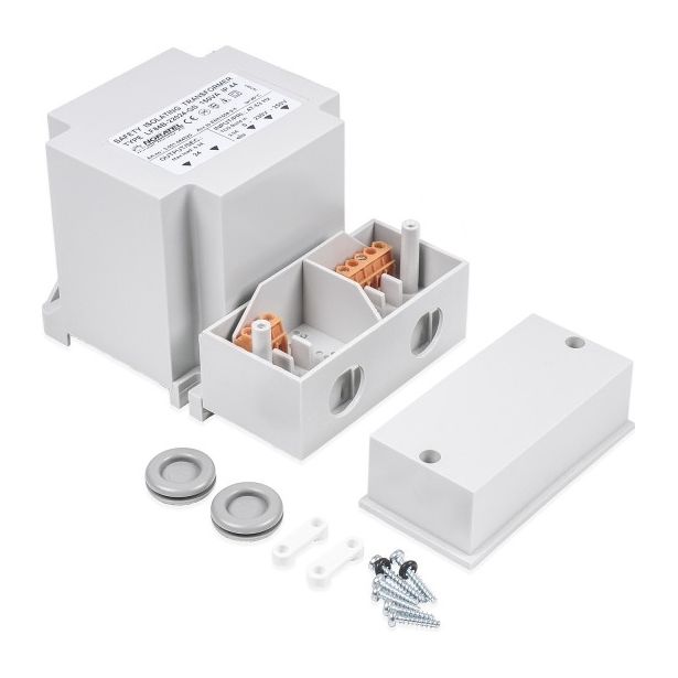 Koirankoppilämmittimen muuntaja Pistesarjat LF 84 B on yksivaiheinen suojaerotusmuuntaja, joka on testattu EN61558-2-6 normien mukaisesti. Erotetut käämit on valettu itsesammuvaan polyuretaaniin ja lisäturvaa tuovat ylilämpösuojaus ja oikosulkusuojaus vaihdettavalla lasiputkisulakkeella. Muuntaja on suunniteltu kiinteään asennukseen ja se on helppo kiinnittää korvakkeista lattiaan tai seinälle. Toisiojännite valittavissa käyttämällä joko 230V tai 250V liitäntäterminaalia. Yhteensopiva CE-direktiivin SELV-asennuksiin. Ruuviterminaalit syöttö- ja lähtöliitännöille. Yhteensopiva esimerkiksi Pistesarjat 24V koirankoppilämmittimien kanssa.