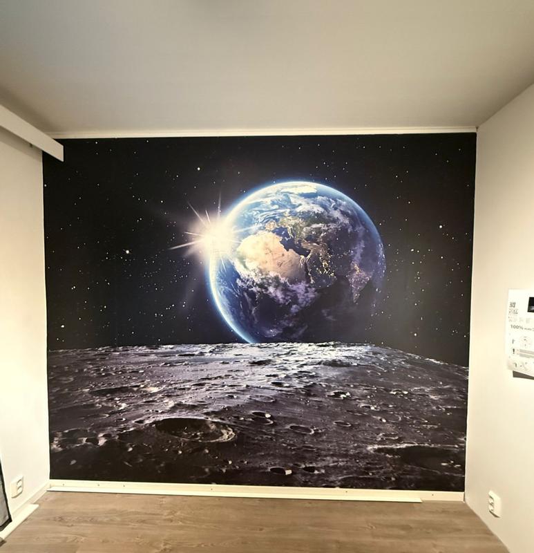 Artgeistin fototapetti View of the Blue Planet eri kokoisiin seiniin. Kuvatapetti toimitetaan 50 cm paneeleissa eli esimerkiksi leveydeltään 300 cm tapetti tulee 6 osassa.