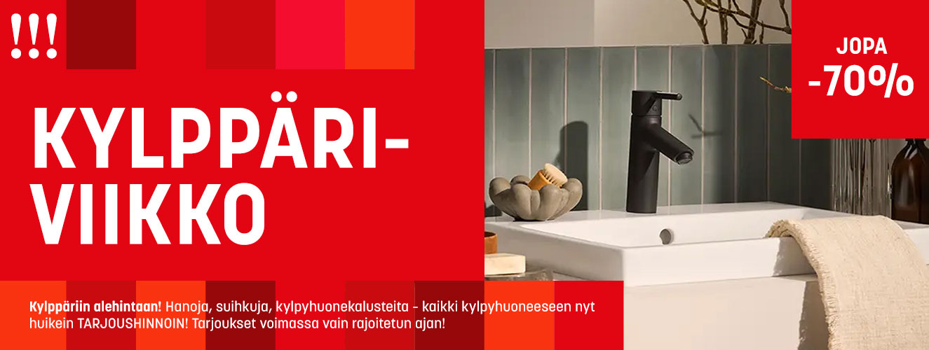 Hanoja, suihkuja, kylpyhuonekalusteita – kaikki kylpyhuoneeseen nyt huikein TARJOUSHINNOIN, jopa -70%