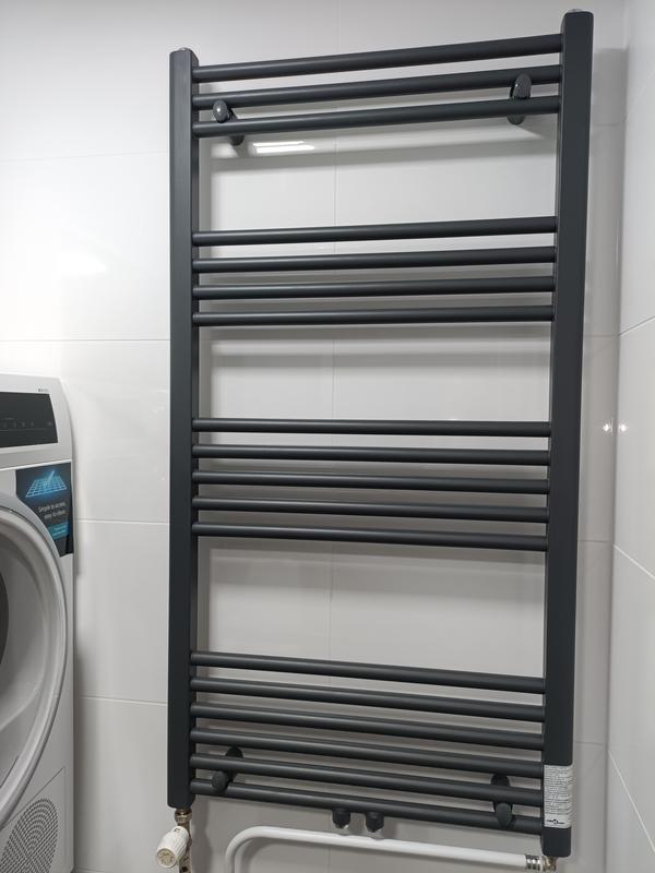 Lämminvesikierron ansiosta pyyhkeesi kuivuvat hetkessä. Kuivaavassa pyyhetelineessä on 18 poikkiputkea, joiden halkaisija on 22 mm ja ne on maalattu harmaaksi. Poikkiputket ovat todella paksuja ja siksi niiden lämmöntuotto on todella korkea. Ylä- ja alareunassa on veden sisääntulo parhaan veden virtauksen takaamiseksi.