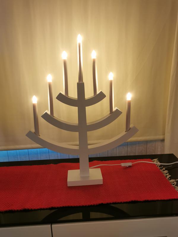 Huom! Kynttelikössä on hehkulamput. Mikäli haluat vaihtaa kynttelikköön LED-varalamput, pitää kaikki lamput vaihtaa samalla kertaa.