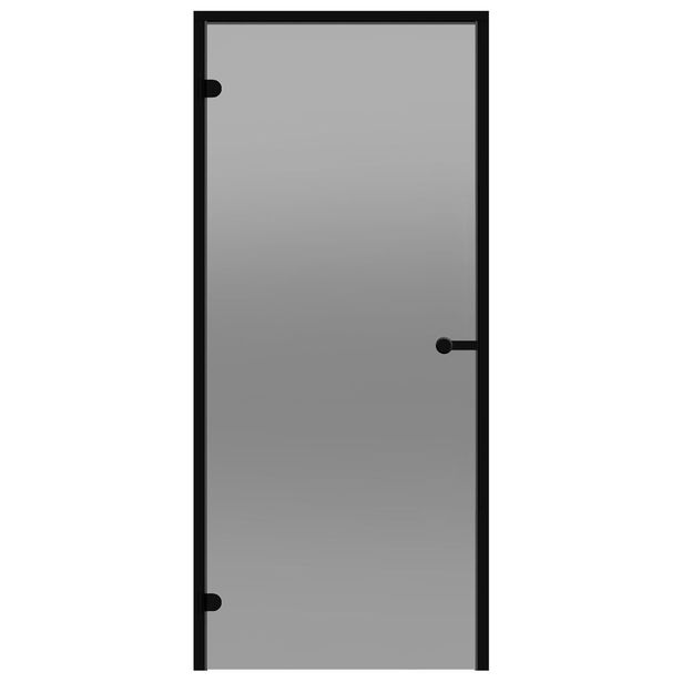 Harvia Black Line 8x19 lasiovi alumiinikarmilla. Alumiinikarmiovi on tyylikäs ratkaisu tiloihin, joissa materiaaleilta vaaditaan hyvää kosteuden kestoa. Mustaan alumiinikarmiin voi valita toiveensa mukaisen kestävän lasin neljästä värivaihtoehdosta: pronssi, savunharmaa, kirkas sekä mattapintainen satiini. Näyttävä ovikokonaisuus sisältää karmin lisäksi mustat saranat sekä vetimen. Black Line -sarjan tuotteet kruunaavat modernin sauna- ja kylpytilakokonaisuuden.
