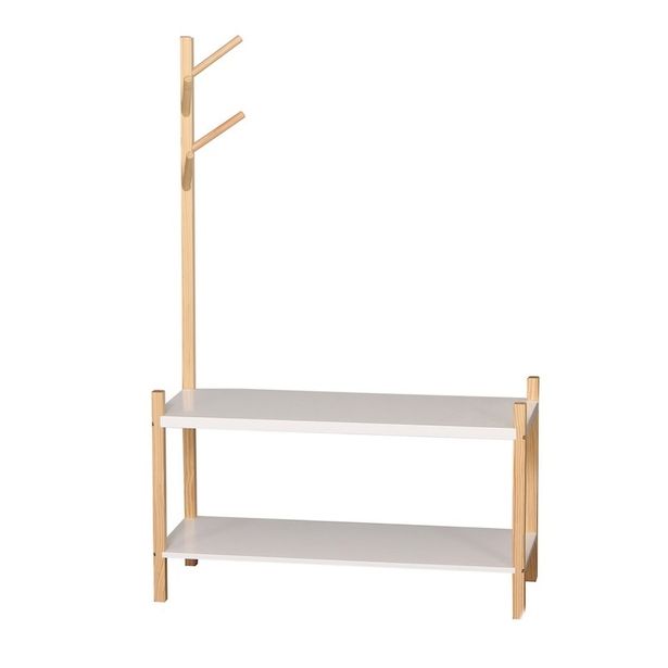 Kompakti Judy Wild Kid's Spirit teline lasten vaatteille ja kengille. Kaksitasoiseen kenkätelineeseen mahtuu mukavasti kenkiä. Tuotteen luonnollinen puupinta ja neutraali valkoinen väritys sopii monenlaiseen sisustukseen.