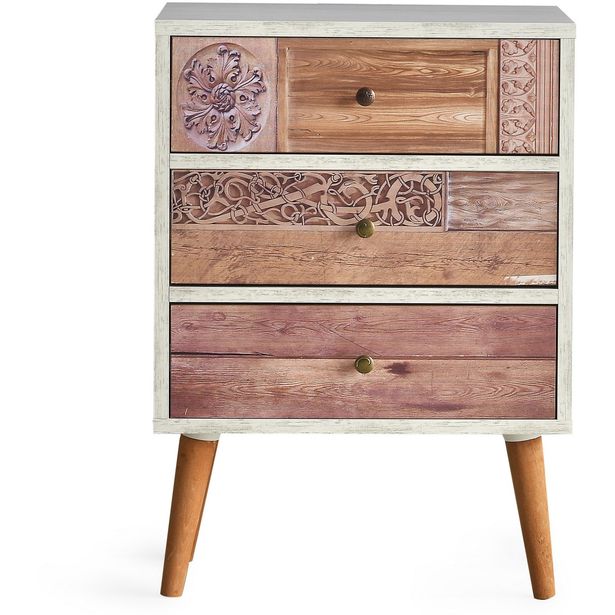 Liza-lipastossa on kolme koristeellista vetolaatikkoa.