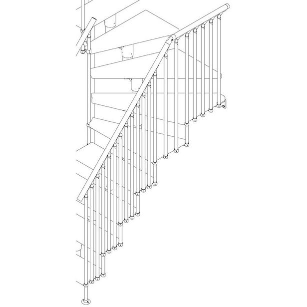 Tässä kaidemallissa on öljytystä pyökistä valmistettu käsijohde. Valitse portaisiisi sopiva metalliosien väri sekä ennen käännöstä asennettujen suorien askelmien määrä.