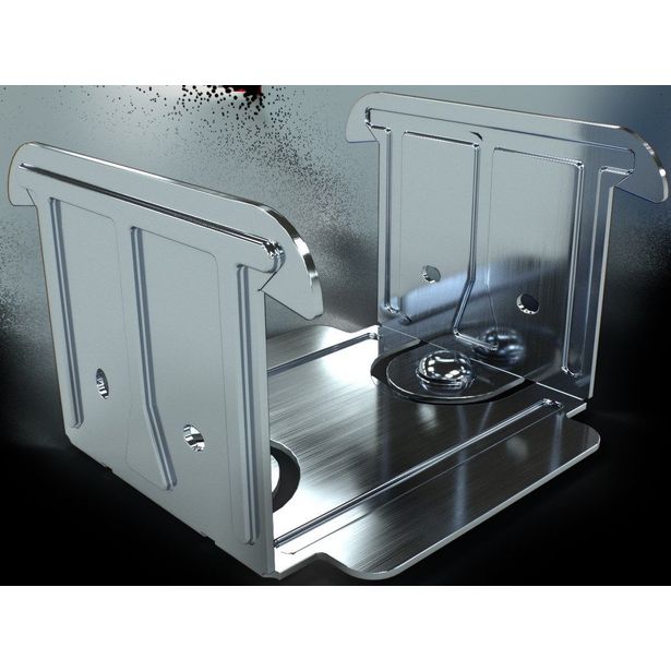 Lukituskappale poikittais- ja pitkittäiskannattajien liittämiseen 2-tasoasennuksessa. Ainesvahvuus 0,8 mm.