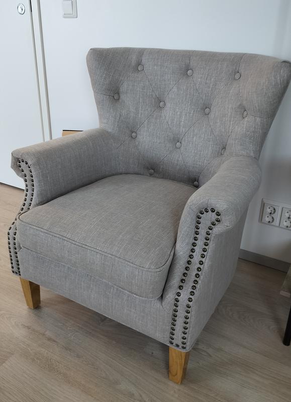 Mukava istua★★★★★★★★★★Suosittelen tuotettaTuoli on mukava istua eri asennoissa ja kevyt kantaa. Ainoa hienoinen pettymys oli kankaan väri, joka on myyntikuvaa tummempi. Myös koristenapit ovat tummat, eivätkä kirkkaan kultaiset. Myös jalat ovat todellisuudessa vaaleammat. Kuvasta näkee todellisen värisävyn verrattuna maalarinvalkoiseen seinään.Oliko arvostelu hyödyllinen?Oliko arvostelu hyödyllinen?