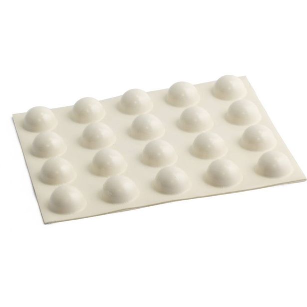 Itsekiinnittyvä ovenpysäytin valkoista muovia. Arkilla 20 kpl. Mitat 17x17x6 mm.