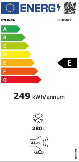 Pakastin Cylinda F2385NHE, 59.5cm, valkoinen, 280l