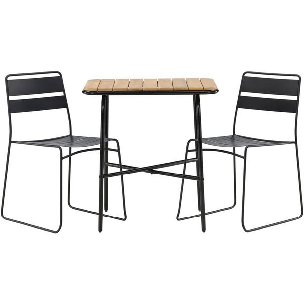 Parvekeryhmä Venture Home, 88x70cm Holmbeck-pöytä + 2 mustaa Lina-tuolia