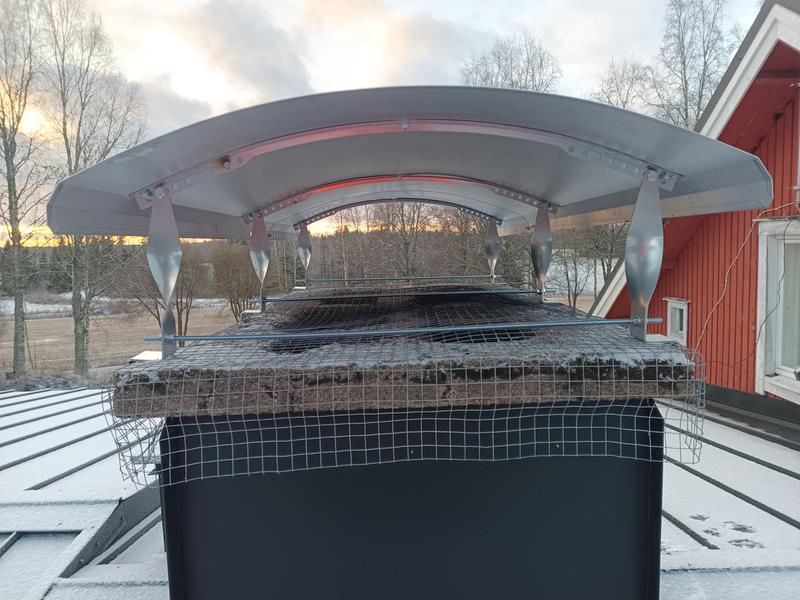 Laadukas piipunhattu★★★★★★★★★★Suosittelen tuotettaMateriaalit vaikuttavat laadukkailta ja viimeistely oli hyvä. Mukana tuli selkeät ohjeet, joiden avulla kokoaminen onnistui helposti. Hattu on yllättävän suuri ja painava, joten kokosin sen maassa ja hinasin sitten köydellä katolle. Avustaja on hyvä olla mukana nostovaiheessa ohjaamassa hattua, ettei se kolise mihinkään. Hattu tarttui tukevasti kynsillään piipun kaulukseen ja on pysynyt paikallaan myös kovassa tuulessa. Kelpo tuote.Oliko arvostelu hyödyllinen?Oliko arvostelu hyödyllinen?