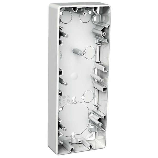 Exxactin 35 mm kolmeosainen pinta-asennusrasia. Rasiaa saatavana 1 - 3 aukkoisena matalana (21 mm), että korkeana (35 mm) versiona. Tuotteen asennusta helpottavat erilliset pohja- ja sivuosat. Pinta-asennusrasiaa voidaan käyttää minkä tahansa Exxactin 3-osaisen kehyksen kanssa.