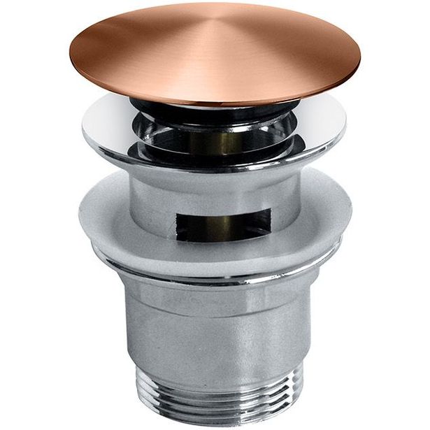 Pohjaventtiili Noro Push, pop-up, ylivuotosuojalla, harjattu kupari