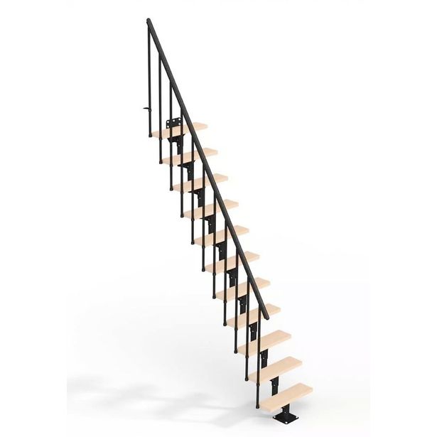 Huomioithan, että tämä portaikko on suunniteltu huoneisiin, joiden lattiatason paksuus on min. 20 cm (nousu + 2 cm). Toimitukseen sisältyy yksi porraskaide. Jos olet asentamassa portaita muualle kuin seinän viereen, on portaisiin saatavilla lisäkaide (myydään erikseen).