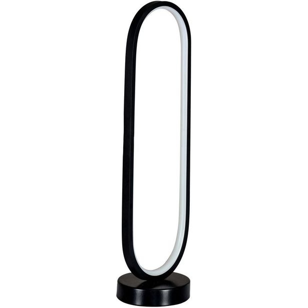 Alumiinista valmistettu musta pöytävalaisin Linento Lighting Orbitae. Valaisimessa on rautainen jalusta, jonka halkaisija on 12 cm. Pöytävalaisimen korkeus on 47 cm. Valonlähteenä toimivat LED-nauhat, joiden teho on 8-10W/metri. LED-nauhojen kokonaispituus on 105 cm.