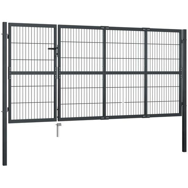 Puutarhaportti tolpilla, teräs, 350x120cm, antrasiitti