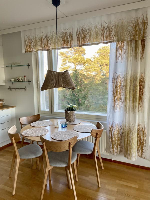 Tyylikäs Valerie on maanläheinen ja elegantti riippuvalaisin, joka on itsessään kodikasta tunnelmaa luova sisustuselementti. Valaisimen kaunis varjostin on punottu beigestä juuttinarusta ja valo säteilee ihastuttavasti läpi varjostimen aukoista. Kontrastia ja modernia ilmettä keveään kokonaisuuteen luovat mustat lampun kanta ja ripustusosat. Kaarevalinjainen Valerie sopii hyvin esimerkiksi olohuoneeseen, makuuhuoneeseen tai ruokailupöydän ylle. Valaisimen ripustuskorkeus on säädettävissä, maksimikorkeus 150 cm. Kuvun halkaisija on 52 cm. Valonlähde 1xE27, polttimo ei sisälly mukaan.