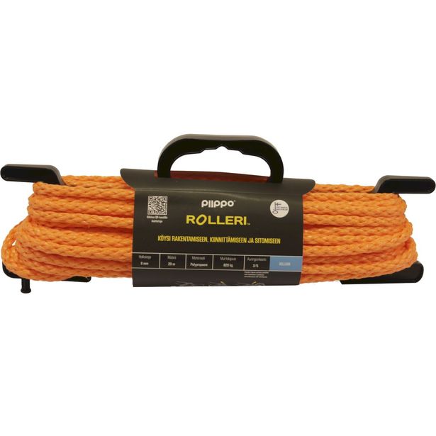 Rolleri Piippo palmikoitu polypropeeni, 8mm x 20m, oranssi