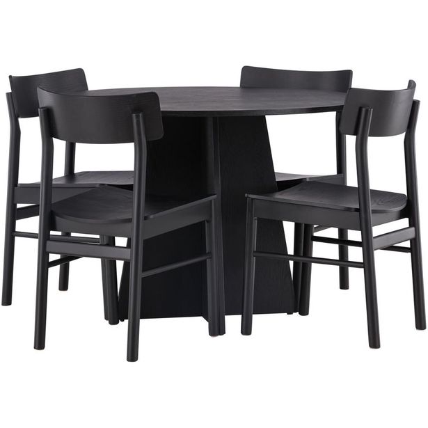 Ruokailuryhmä Venture Home, ⌀110cm musta Bootcut-pöytä + 4 Montros-tuolia