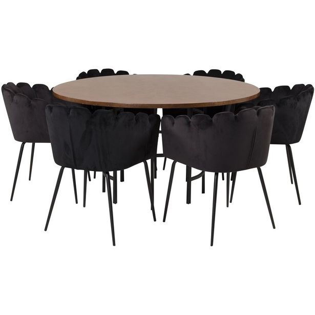 Ruokailuryhmä Venture Home, ⌀140cm musta Copenhagen-pöytä + 6 Limhamn-tuolia, sametti