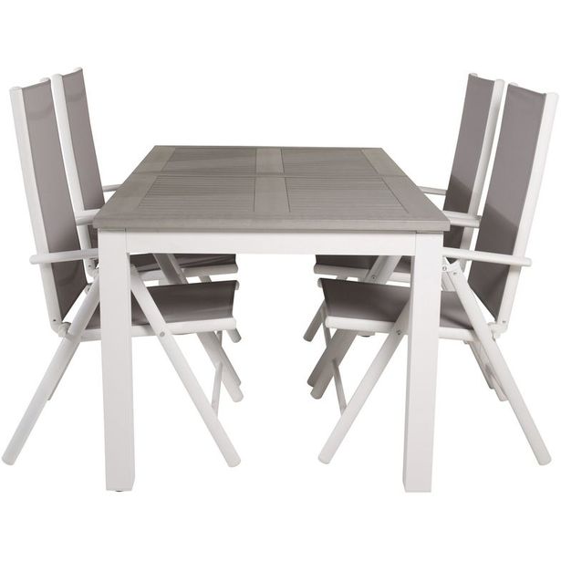 Ruokailuryhmä Venture Home, 152/210x90cm harmaa/valkoinen jatkettava Albany-pöytä + 4 harmaa/valkoista Break-säätötuolia