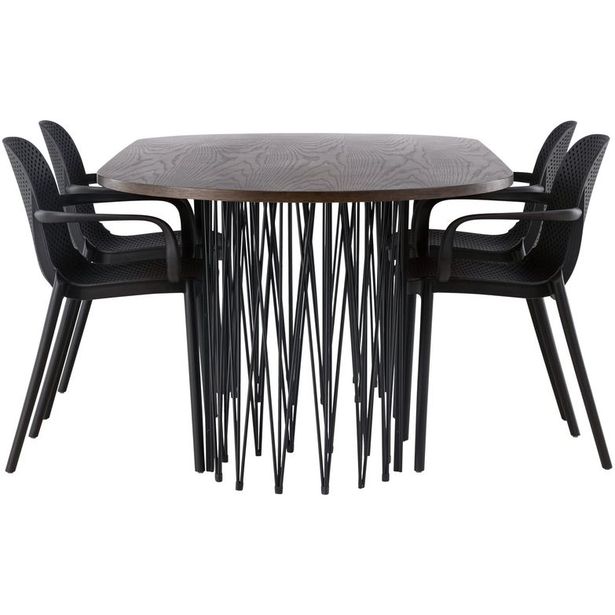 Ruokailuryhmä Venture Home, 220x100cm ruskea Stone Oval -pöytä + 4 mustaa Baltimore-tuolia