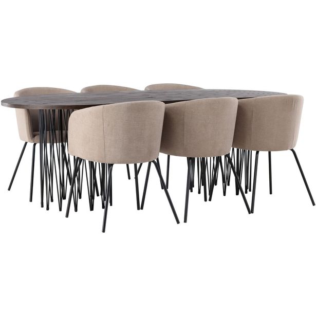 Ruokailuryhmä Venture Home, 220x100cm ruskea Stone Oval -pöytä + 6 beigeä Berit-tuolia