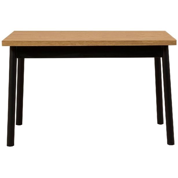 Ruokapöydässä on puiset mustat jalat. Tämä pöytä sopii monenlaisiin sisustuksiin ja täydentää ruokailutilan.