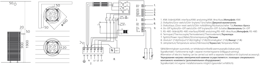 - Asettelulämpötila °C: löylyhuone 30-110, kivitila 300-450