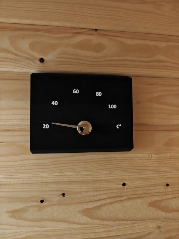 Pinettan tyylikäs ja nykyaikainen neliskanttinen saunamittari tuo viimeisen silauksen saunaasi! Männystä valmistettu mittari on petsattu mustaksi.