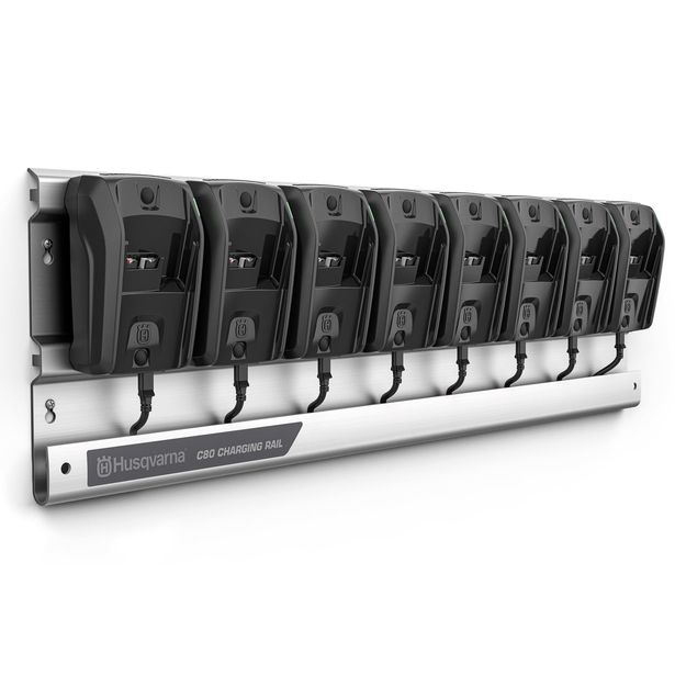 Husqvarna 40-C80 -latausteline tarjoaa kätevän tavan ladata jopa kahdeksan Husqvarna BLiX 36 voltin akkua yön aikana. Latausasema voidaan kiinnittää seinälle, jolloin tilaa säästyy, laturit pysyvät puhtaana ja hyvässä kunnossa, eivätkä kaapelit pääse sotkeutumaan toisiinsa. 8-in-1-kaapeliliitännän ansiosta kaikki kahdeksan laturia saavat virtansa yhdestä pistorasiasta. Tämä pienitehoinen latausjärjestelmä ei tarvitse jäähdytystä latauksen aikana, joten se on erittäin hiljainen. Tuote sisältää alumiinikiskon, kaapelisarjan ja kahdeksan 40-C80-laturia. Akut myydään erikseen.