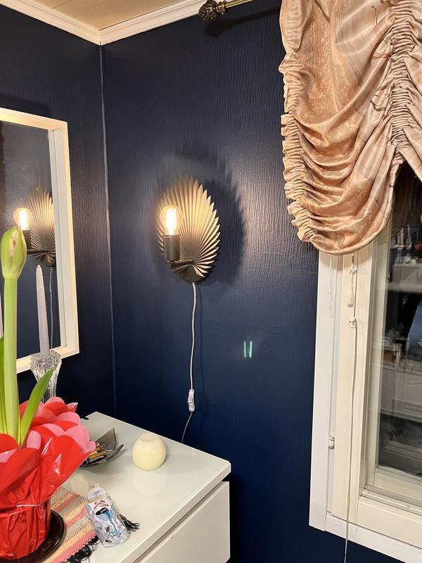 Kaunis, katseenvangitseva By Rydéns Aruba -seinävalaisin mustan värisenä on erinomainen esimerkki siitä, kuinka valaisin on sekä näyttävä sisustuselementti että käytännöllinen valonlähde. Lehdenmuotoinen valaisin tuo tunnelmallisen hehkun tilaan kuin tilaan. Läpinäkyvä, 2 metriä pitkä virtajohto sulautuu hyvin seinään.