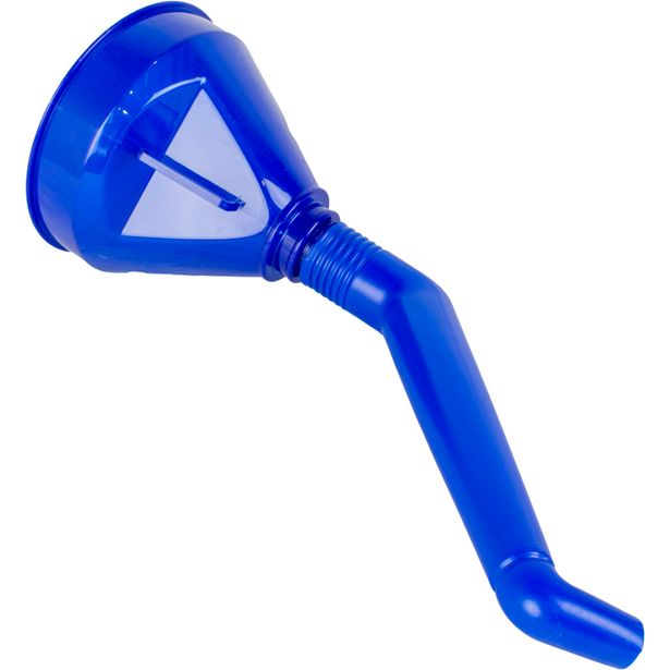 Kiiltävä sileästä muovista valmistettu suppilo, joka soveltuu erityisen hyvin mm. öljyn ja muiden aineiden kaatamiseen ahtaisiin paikkoihin kuten moottoritilan säiliöihin. Varustettu tukevalla kahvalla. Mukana tuleva irrotettava kulmamallinen jatkosuutin voidaan irrottaa ja kiinnittää suppiloon kiertämällä. Kulmamallinen suutin helpottaa nesteiden kaatamista vaikeissa paikoissa. Suppilon halkaisija 145 mm. Suppilon pohjassa siivilä, joka estää epäpuhtauksien pääsyn säiliöihin.